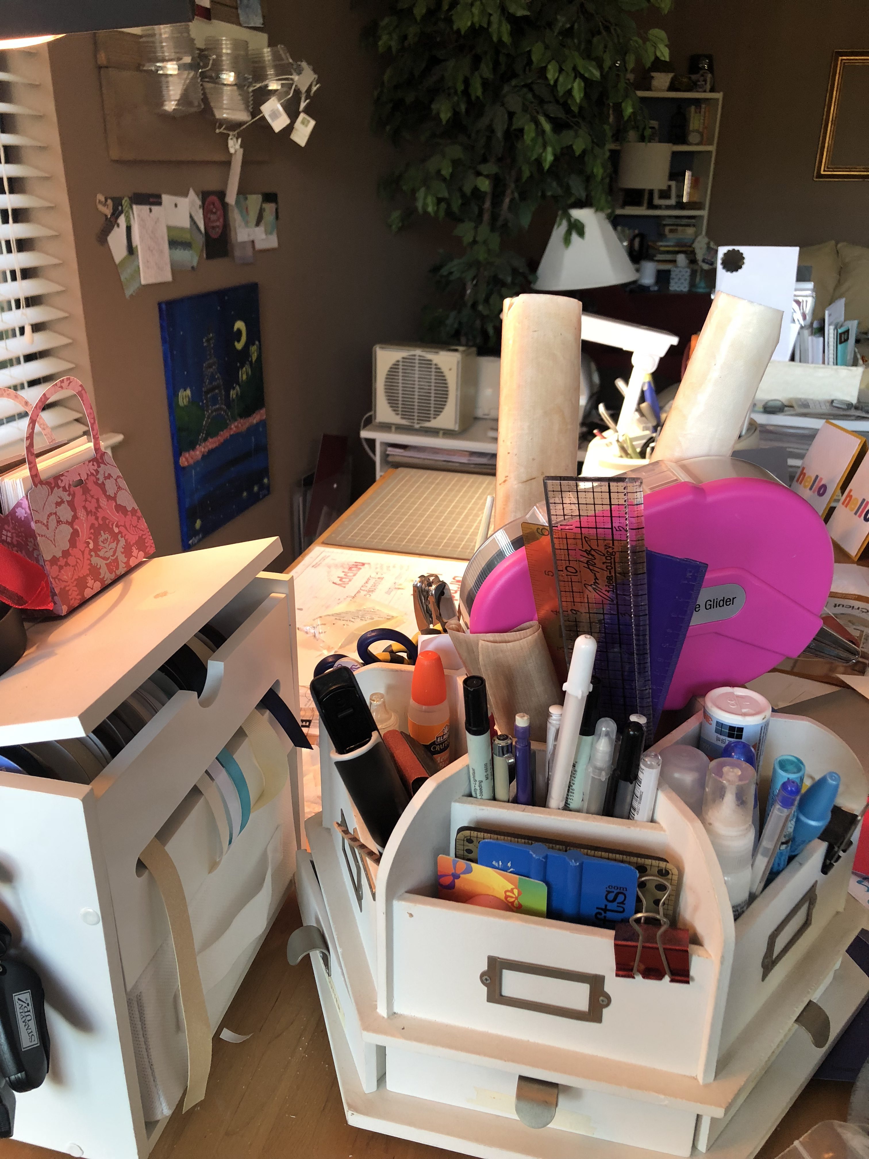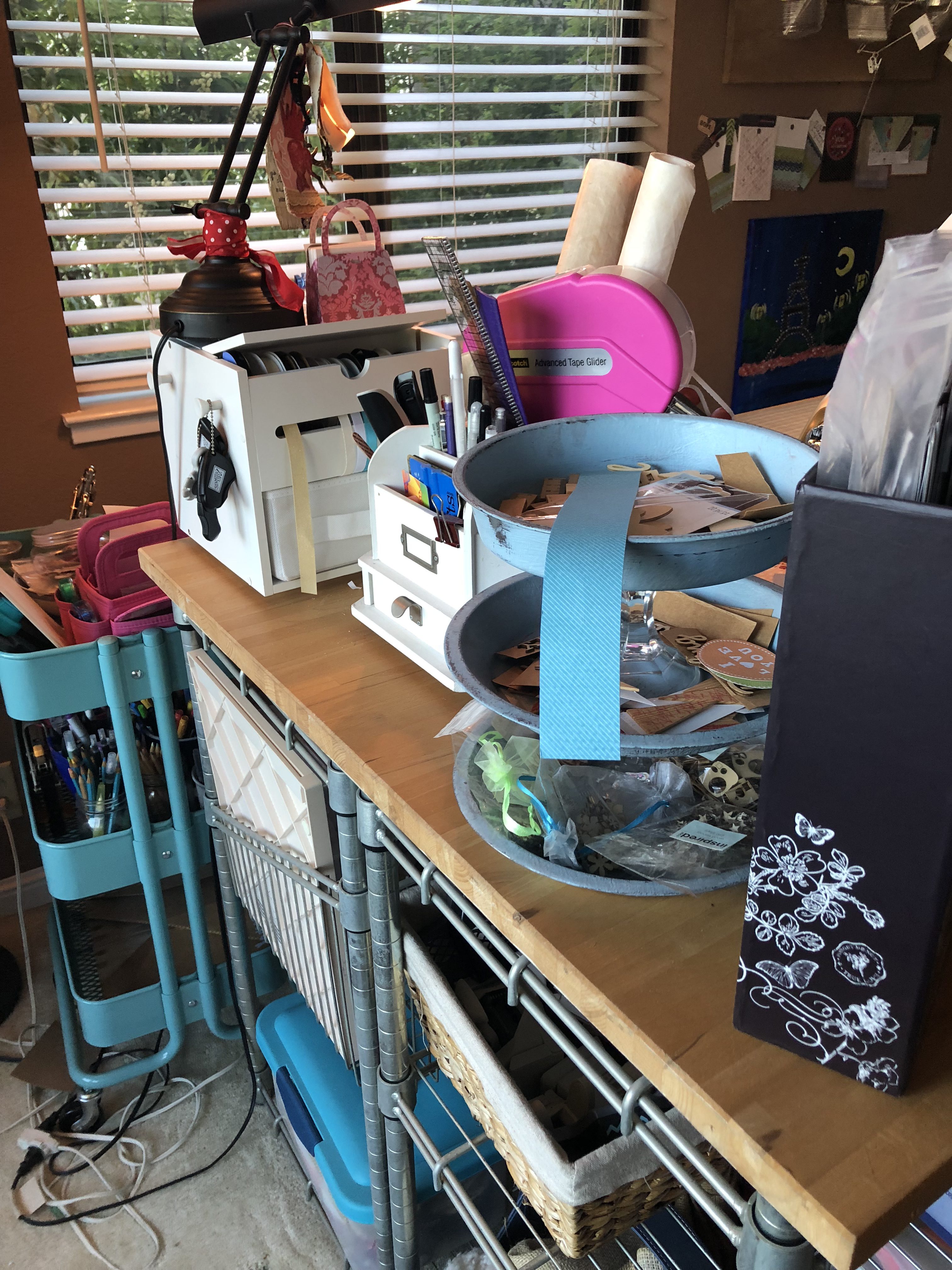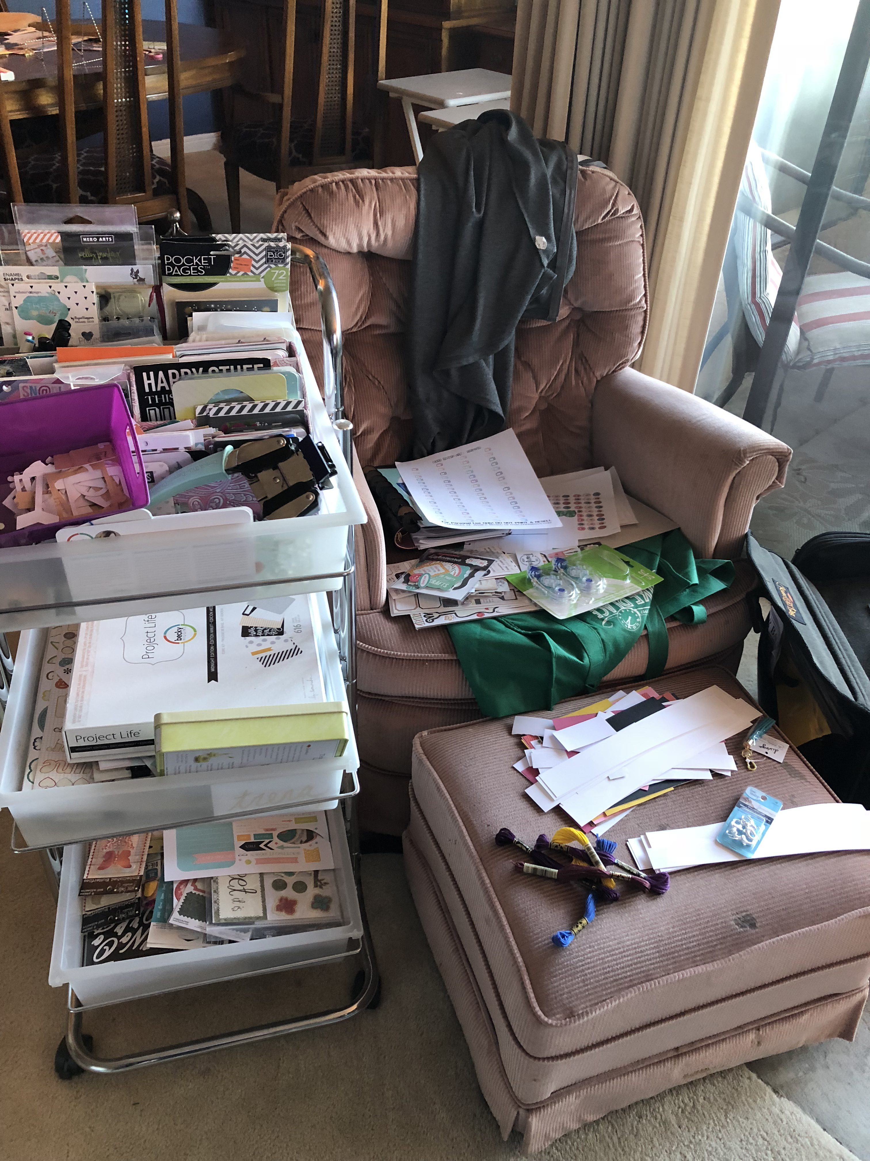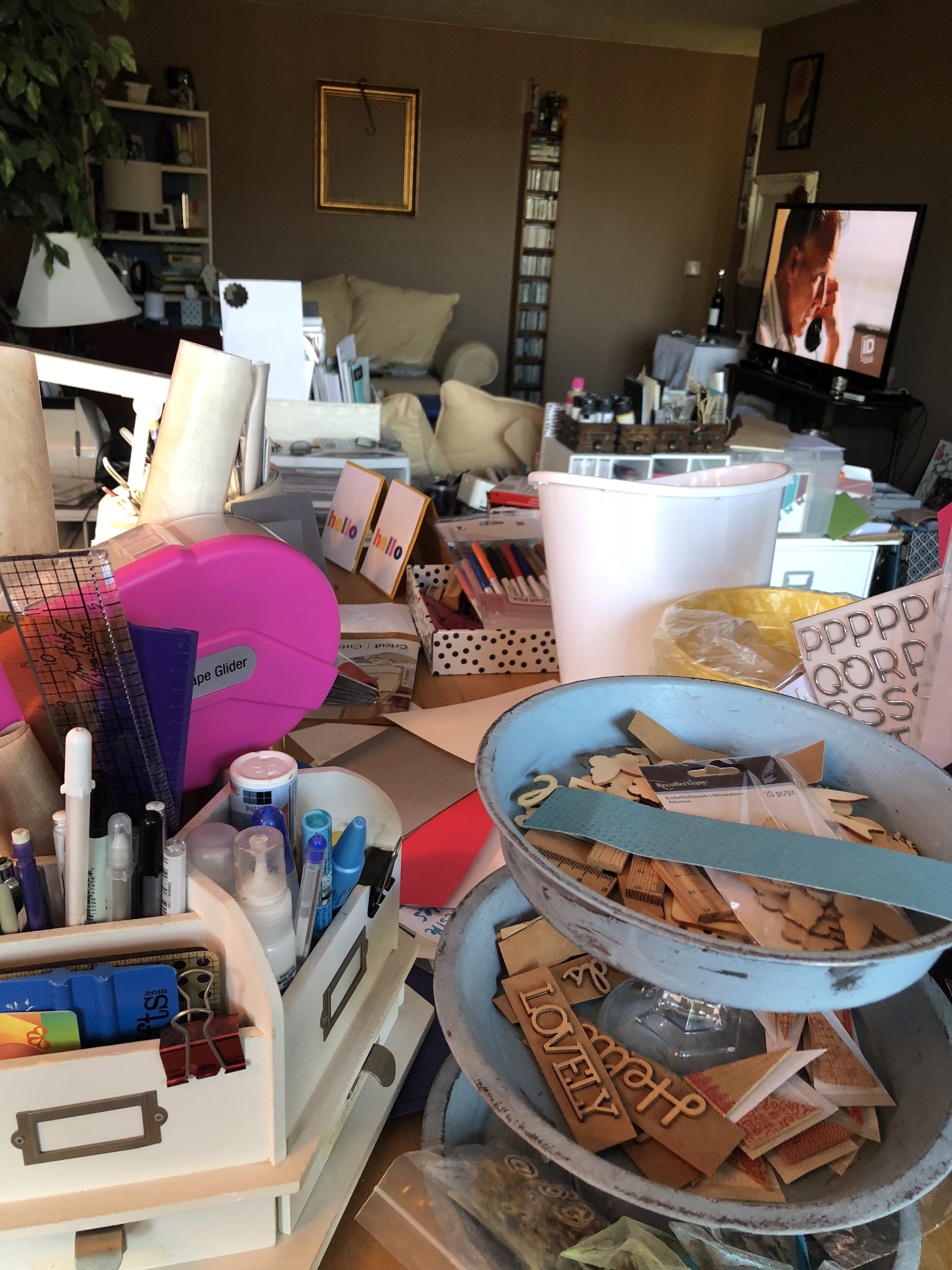 I have a dedicated craft space located in my living room that I love BUT what I don’t love is how messy I am and how I don’t clean up after each project. The truth is the bigger the project, the messier it gets and the higher the likelihood that I won’t clean it up when I’m done! I also leave stuff out while I’m working on a project which could take weeks!