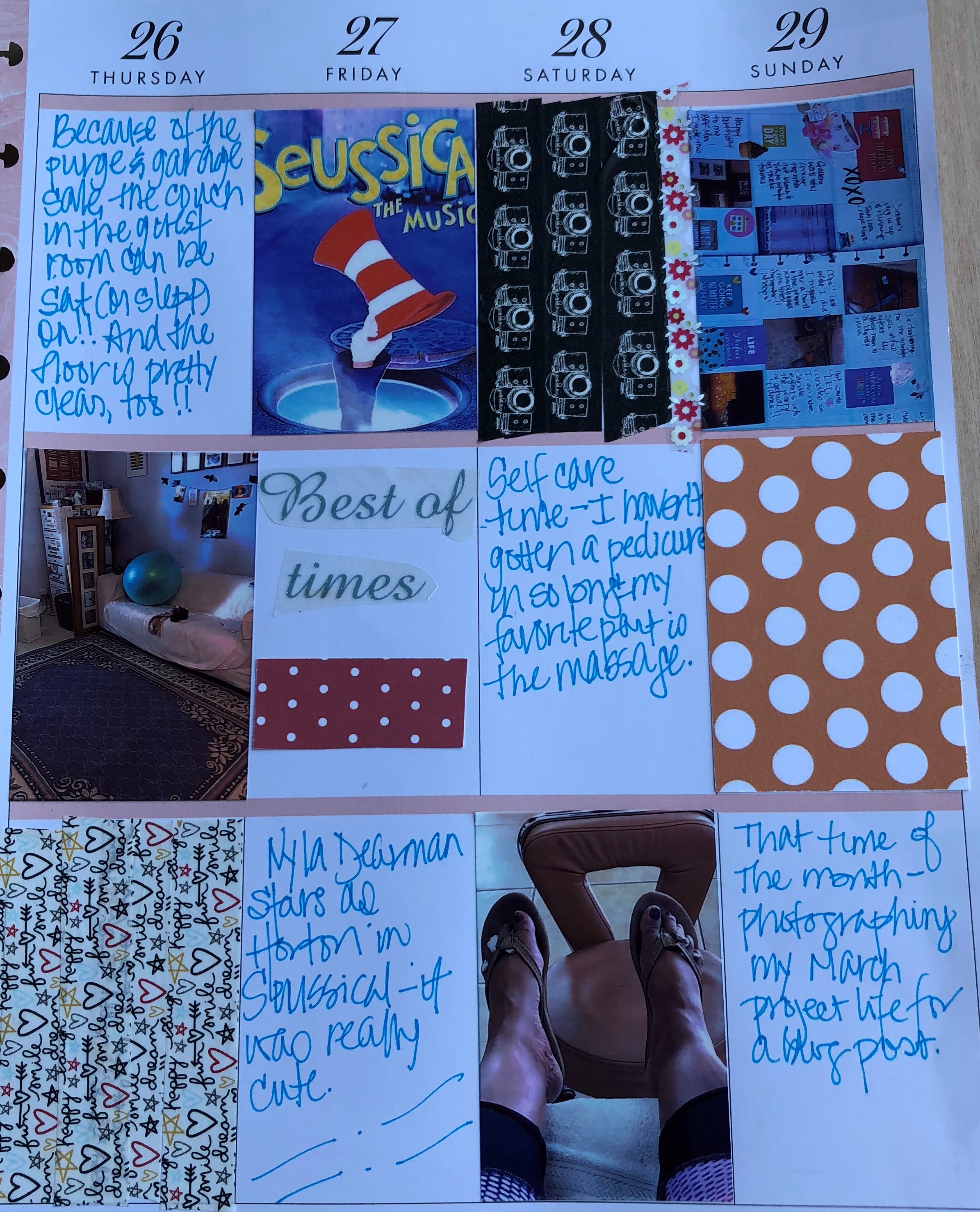 I have been doing Project Life since 2010 and I thoroughly enjoy looking at my albums from the past. So much stays the same (like laundry) and many things change. One of the challenges is to find something to photograph everyday. It’s a good challenge though but it forces me to think about my life and appreciate it in different ways. Laundry, grocery shopping, home repair, etc.. is not interesting on the surface but I feel grateful that I am able to do these and other mundane things even when I don’t want to!